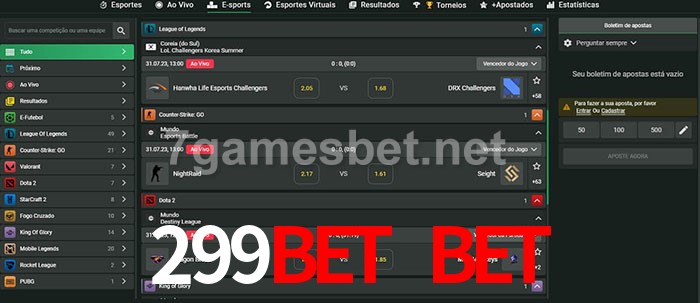 O 299bet bet oferece uma grande seleção de opções de apostas em e-sports com probabilidades competitivas